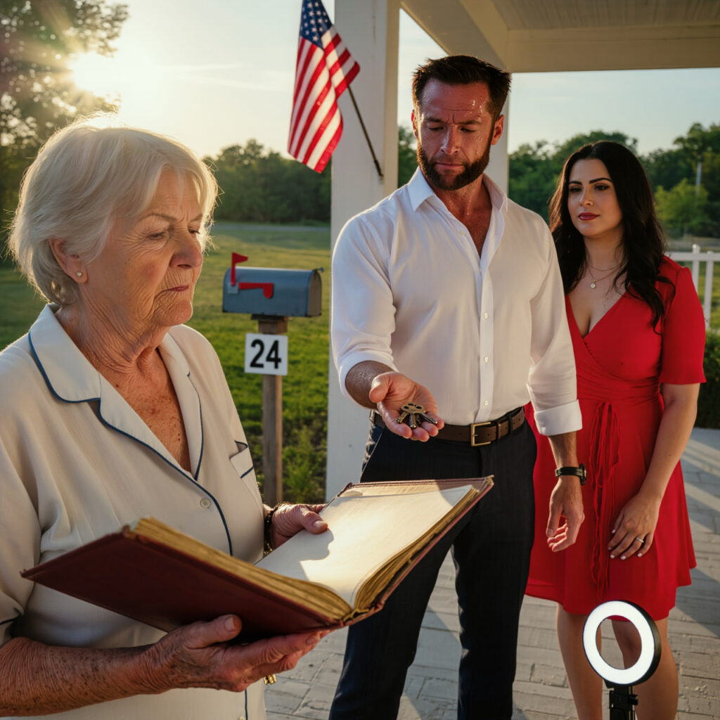 An hour later, tires crunched on our driveway gravel. Through the front window, I saw what passes for ceremony in modern life: Sabrina with a ring light, a friend with a phone already recording, Logan set a step behind his wife like a shadow learning to walk. Sabrina said something to the camera—a chirpy, practiced voice—and gave a half-smile in the direction of the door, a smile I recognized from glossy feeds. Logan jangled his keys at the lock and frowned when the cylinder wouldn’t take them. Sabrina’s friend pivoted the phone to get the angle with our house number, the porch flag, the tidy bushes I plant along the walk every spring. My house had become someone’s content.