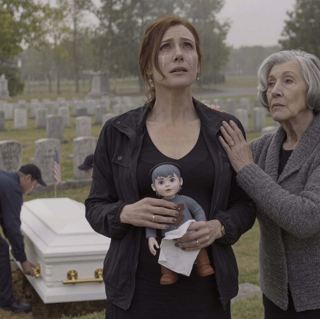 The worker nods and steps back, respecting the boundary Angela has created. I reach into my pocket and pull out Caleb’s favorite action figure, the one he insisted on keeping with him through every hospital stay. I kneel beside the grave and place it gently on top of his casket. I’ll protect what’s yours, I promise, I whisper.