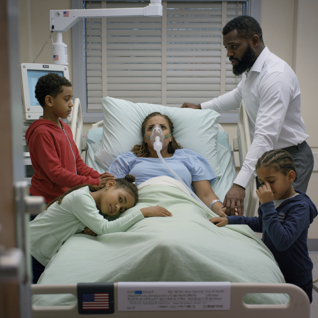 Inside, the air smelled like medicine and fear. Machines beeped, oxygen hissed, and Mo’Nique lay still on the stretcher, her breath shallow and weak. Aaliyah cried quietly. Ari prayed silently. Amir gripped his mother’s hand like he could hold her soul in place.