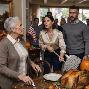 At Thanksgiving dinner, my daughter-in-law handed me a mop. “Stop pretending you’re sick and clean up,” she snapped. “Then you can eat off…
